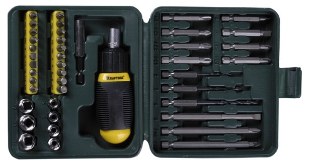 Используется при сборке резьбовых соединений, закручивании шурупов, а так же набор KRAFTOOL зарекомендовал себя у автолюбителей