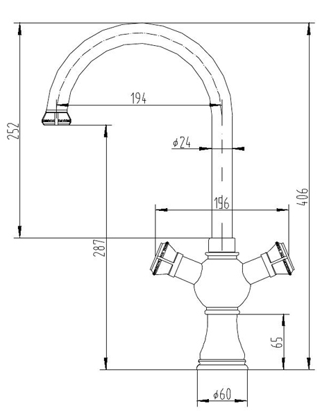 - Высота излива (мм) 287