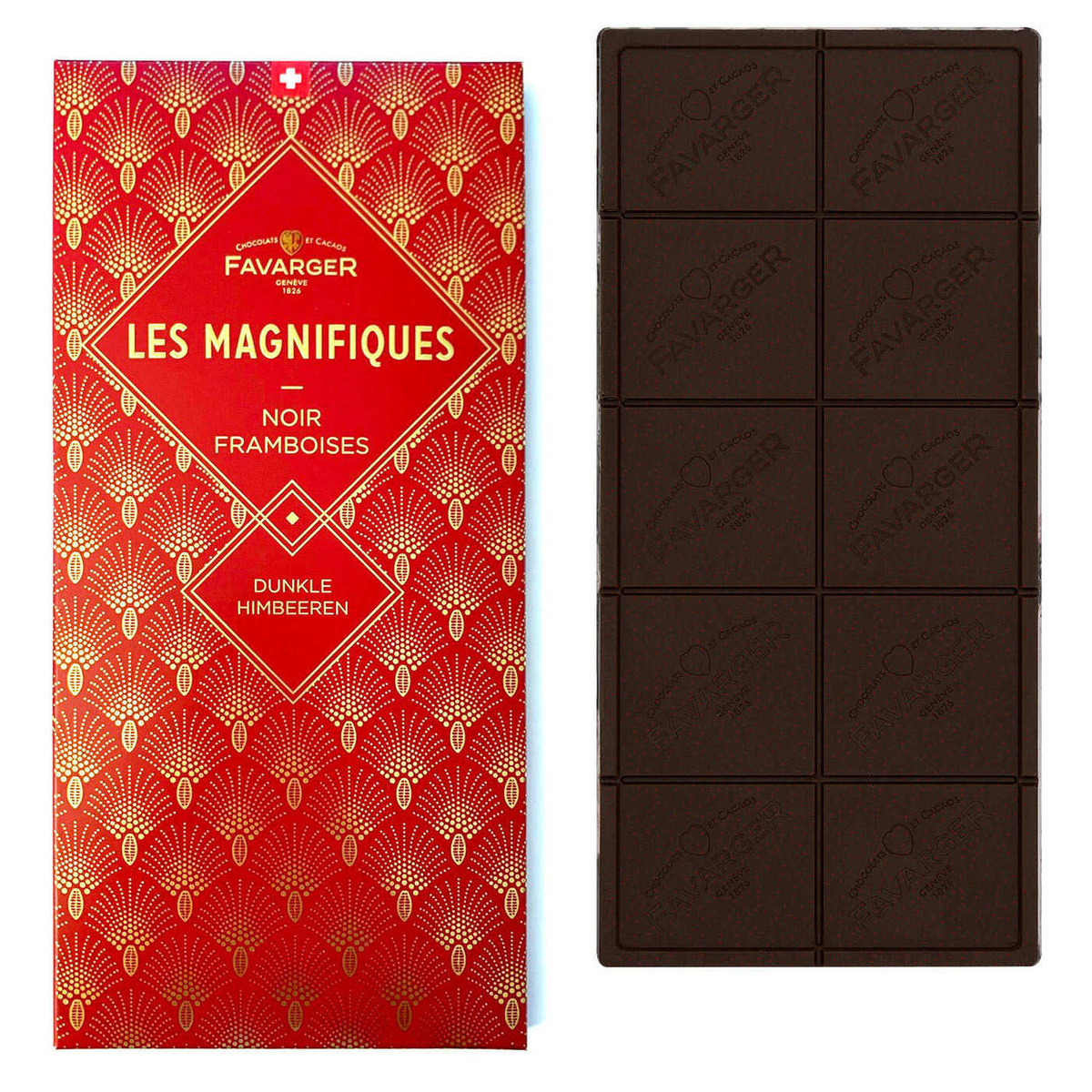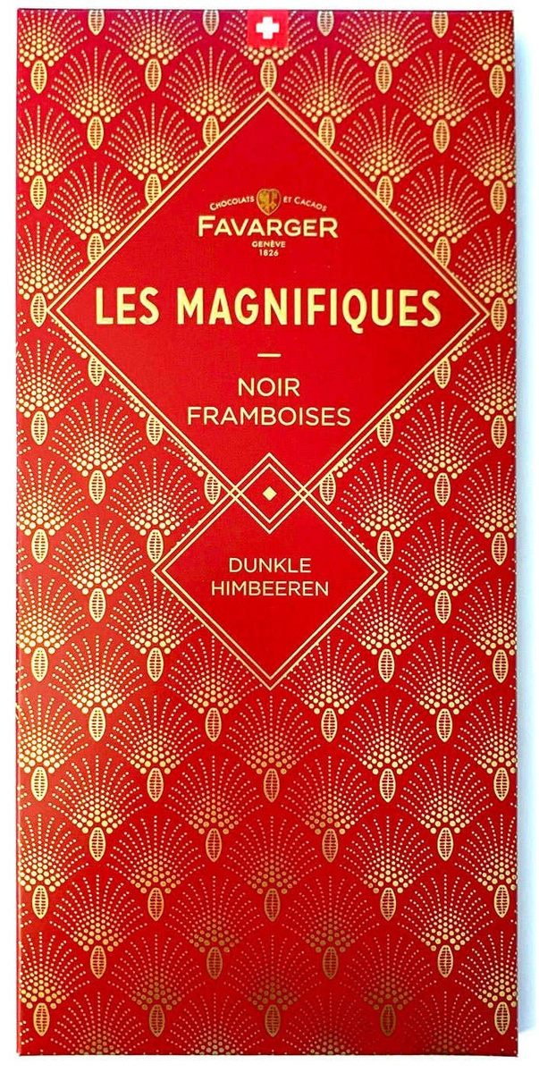 Швейцарский горький шоколад Favarger "Les Magnifiques" (Великолепный) 66% какао с малиной нетто 100г