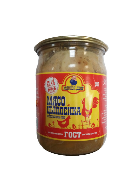 - Состав Мясо цыпленка на кости, морковь, соль, перец черный, лист лавровый. Массовая доля мяса цыпленка (мышечная, соединительная, костная ткань, бульон, выплавленный жир) - 97,4%