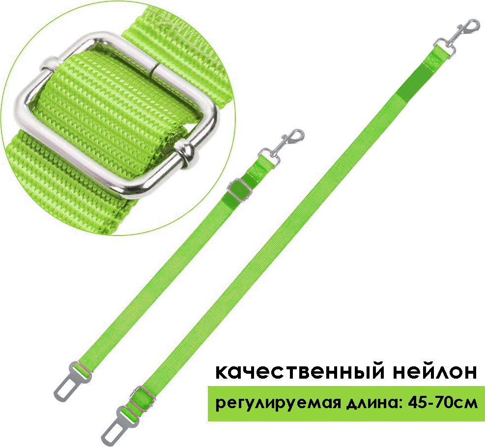 Ремень для собак в автомобиль, зеленый, 70х3 см