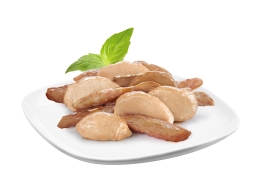 - Ингредиенты мясо и субпродукты (в том числе кролик), злаки и продукты их переработки, аминокислоты (в том числе таурин), минеральные вещества, витамины. Более 85% мясных ингредиентов в каждом ломтике. Без добавления сои, конвервантов, усилителей вкуса