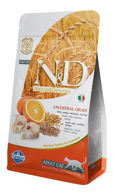 - Ингредиенты свежая треска (25%), дегидратированная треска (24%), рыбий жир, спельта (10%), овес (10%), гидролизат белка животного происхождения, пульпа сахарной свеклы, горох, сушеная морковь, мукa люцерны, инулин, фрукто-олигосахариды, маннан-олигосахариды, обезвоженный сладкий апельсин (0,5%), сухие яблоки, порошок граната, порошок шпината, подорожник (0,3%), порошок черной смородины, порошок черники, хлорид натрия, пивные дрожжи, корень куркумы (0,2%), глюкозамин, хондроитин сульфат, экстракт бархатцев прямостоячих (источник лютеина)