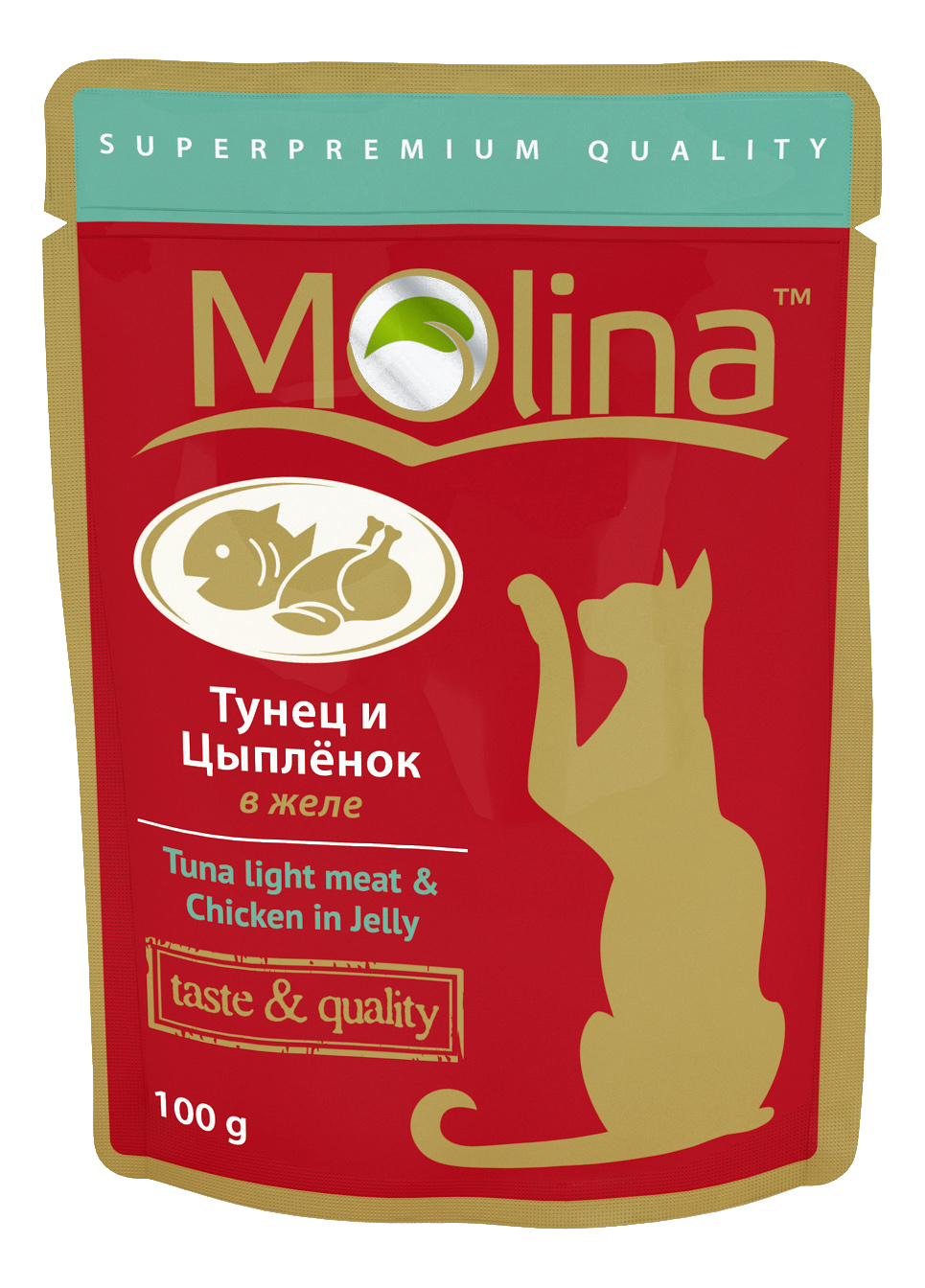- Ингредиенты тунец – 23,5%, цыпленок – 23,5%, рыбный бульон.