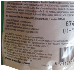 - Питательная ценность влажность (3.3%); жиры (1.9%); зола (13%); клетчатка (7.6%); протеин (8.5%)