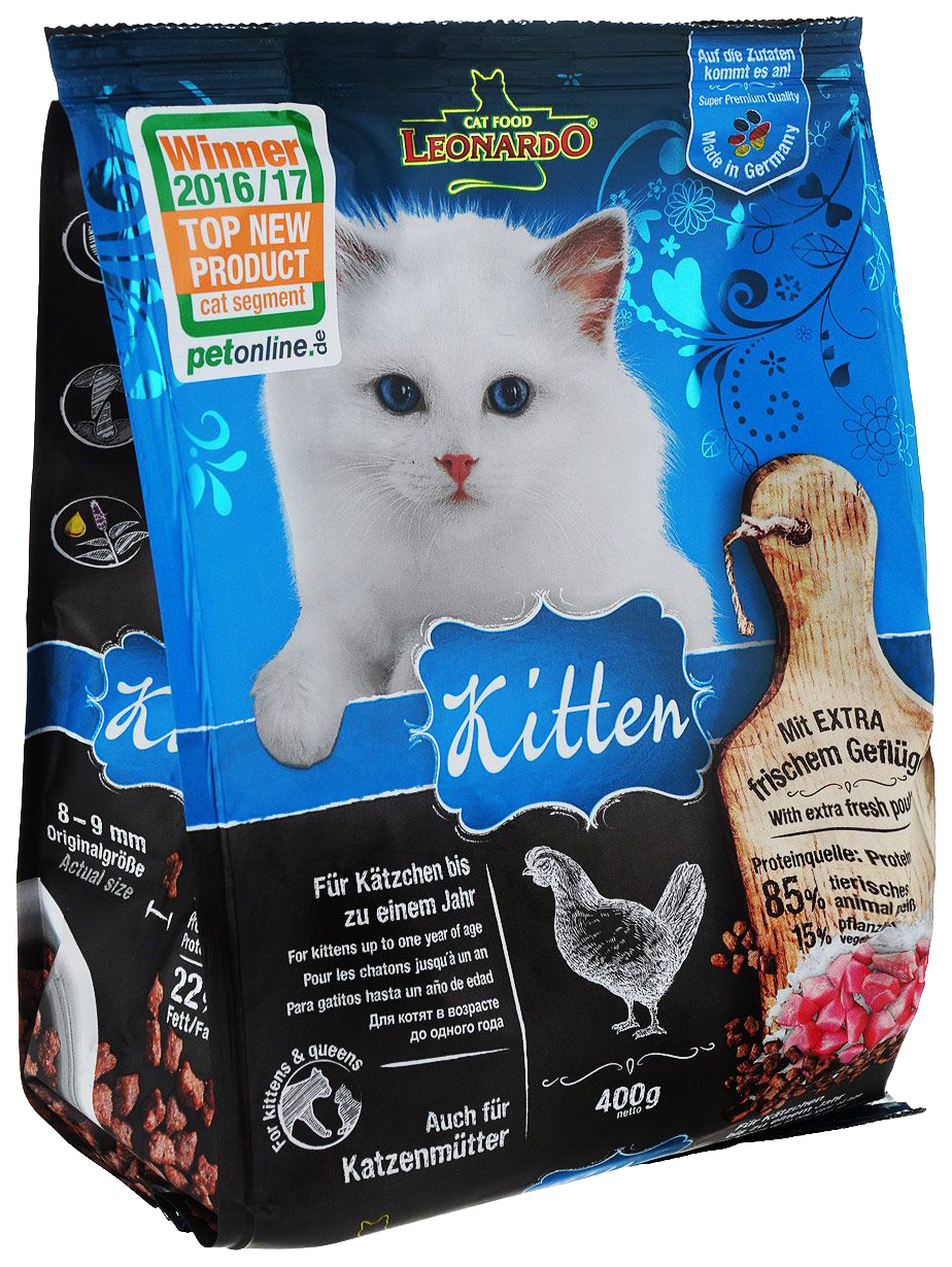 - Ингредиенты свежее мясо птицы (30 %), белок домашней птицы пониженной зольности, высушенный (23 %), рис, кукуруза, мука сельди (9 %), яблочный жмых, сушёный (4 %), гидролизат печени птицы, рожь, солод, высушенное яйцо, морской зоопланктон, измельчённый (криль, 2,5 %), овсяные отруби (2,5 %), пивные дрожжи, сушёные, cемена чии (1,3 %), жир домашней птицы, поваренная соль, калий хлористый, инулин