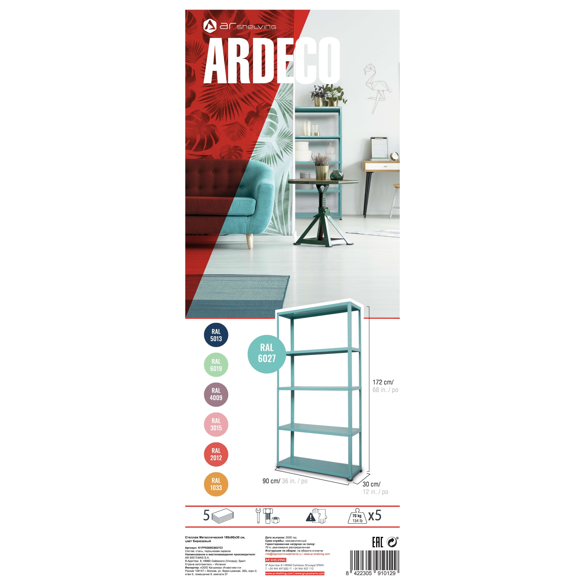 Стеллаж Colour 5 полок 90х172х30 см, металл, цвет бирюзовый