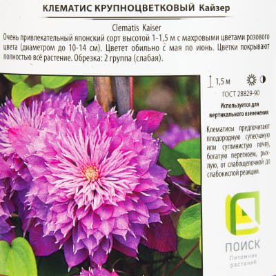 Клематис крупноцветковый «Кайзер» 2 л h20 см