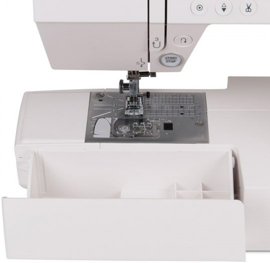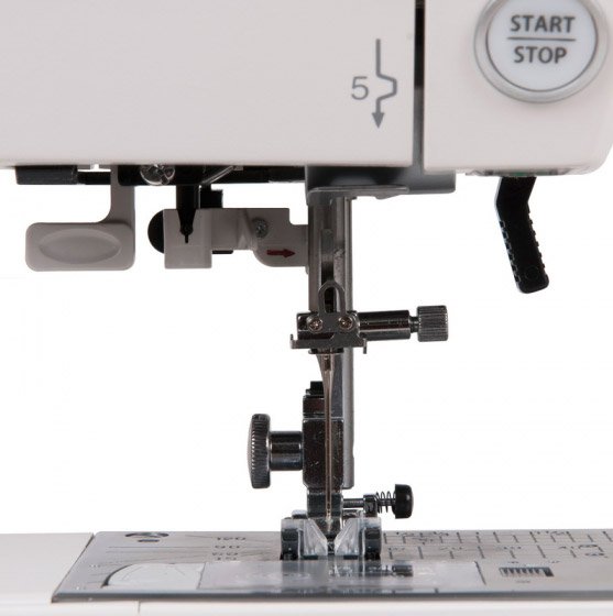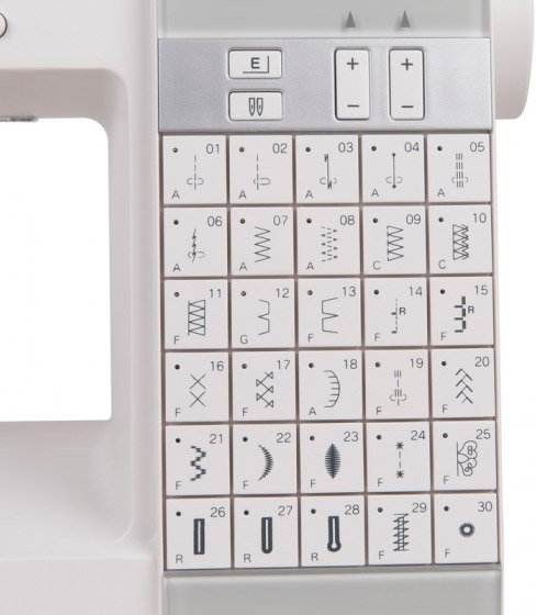 Компьютерная швейная машина с горизонтальным челноком. 30 швейных операций. Строчки: рабочие, оверлочные, трикотажные, декоративные. Петля автомат (3 вида + глазок). Длина стежка: до 5 мм. Ширина строчки: до 7 мм. ЖК дисплей с подсветкой. Устройство быстрой заправки шпульки. Кнопка позиционирования иглы.