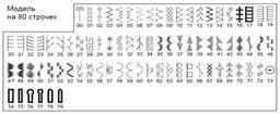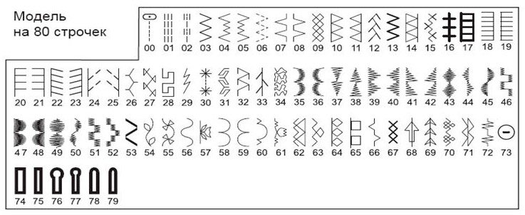 Электронная швейная машина с вертикальным качающимся челноком. ЖК дисплей. 80 швейных операций. Основные строчки: рабочие, оверлочные, трикотажные, декоративные, отделочные, подшивочные. Автоматическое обметывание петель за один прием (6 типов). Плавная регулировка длины и ширины стежка. Максимальная длина строчки: 4.5 мм.