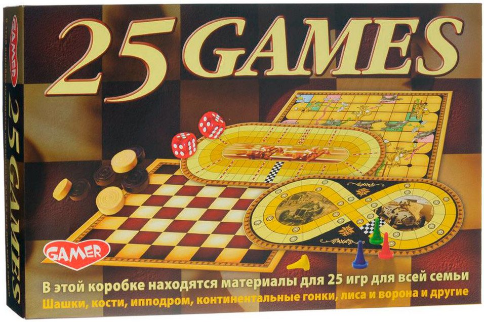 Игра содержит материал для 25 игр, рассчитанных на игроков старше 5 лет. Из представленных игр можно отметить такие популярные игры, как шахматы, несколько видов шашек, «Нарды», «Ипподром», «Тотализатор», «Жокей», «Лиса и ворона», «Гонки» и др. Количество игроков: 2-4.