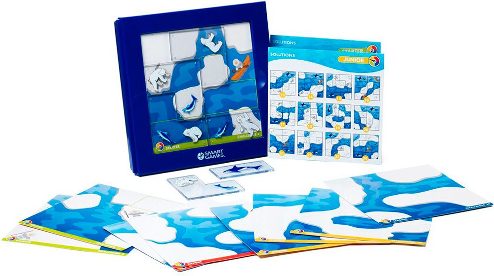 Детская логическая настольная игра с четырьмя уровнями сложности. Развивает логическое мышление, познавательные способности, зрительное и пространственное восприятие. В комплекте: пластмассовое игровое поле (оно же является коробкой для хранения игры), 24 двухсторонних карточки, 6 прозрачных пластиковых фишек с рисунками медведей и рыб, буклет с 48 заданиями и ответами.
