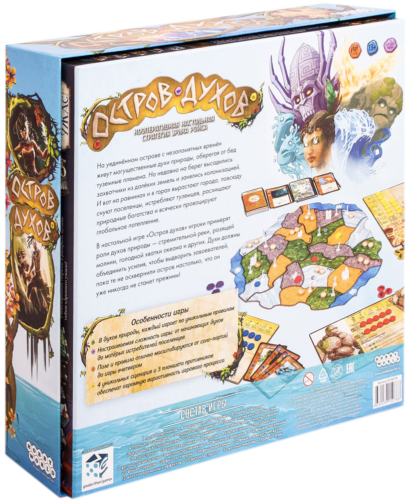 Кооперативная настольная стратегия. Игроки примерят роли духов природы - стремительной реки, разящей молнии, голодной хватки океана и других. Духи должны объединить усилия, чтобы выдворить завоевателей, пока те не осквернили остров духов настолько, что он уже никогда не станет прежним! 4 уникальных сценария и 3 планшета противников обеспечат огромную вариативность игрового процесса.