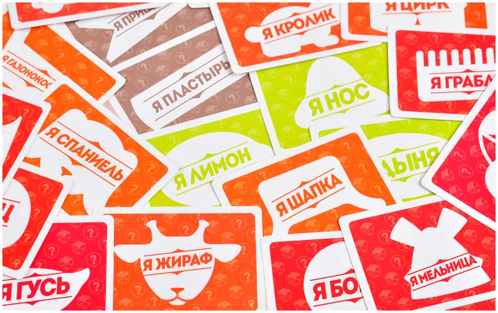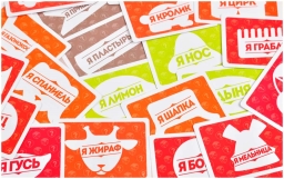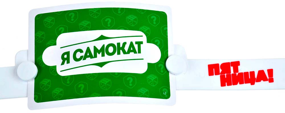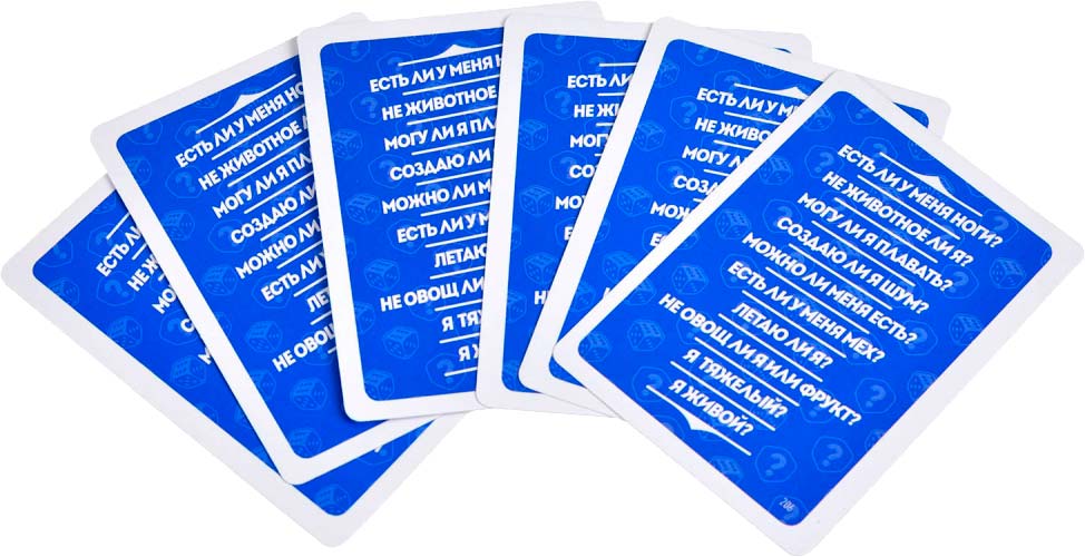 Веселая игра для компании. Суть игры: надев на лоб карточку со словом-определением, нужно, задавая наводящие вопросы другим участникам игры, за одну минуту угадать, что это за слово. Если игрок не угадал слово, ход переходит к другому игроку, а карточка выбывает игры. Побеждает тот, кто угадает больше слов. Возраст игроков 10+. Время игры 45-90 минут. Количество игроков 2-6.