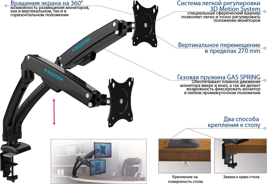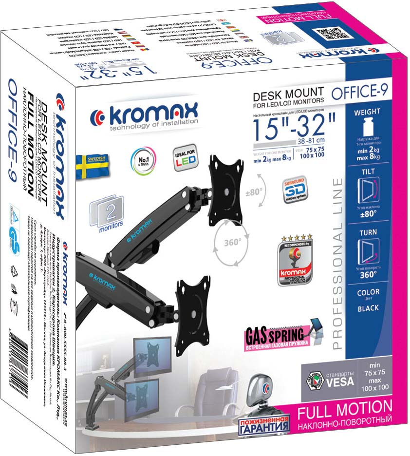 Крепление для монитора Kromax OFFICE-9 black