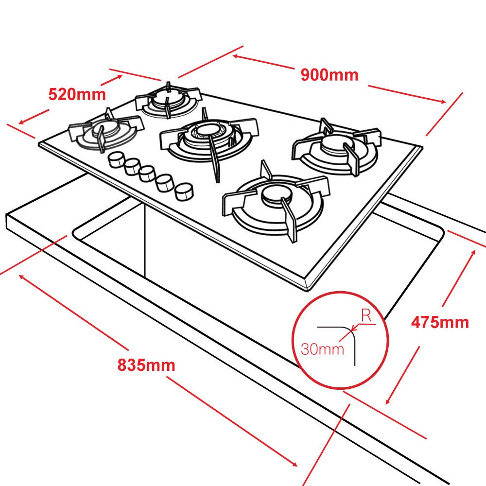 Варочная панель газовая HCG-475, стекло 5 конф, черная