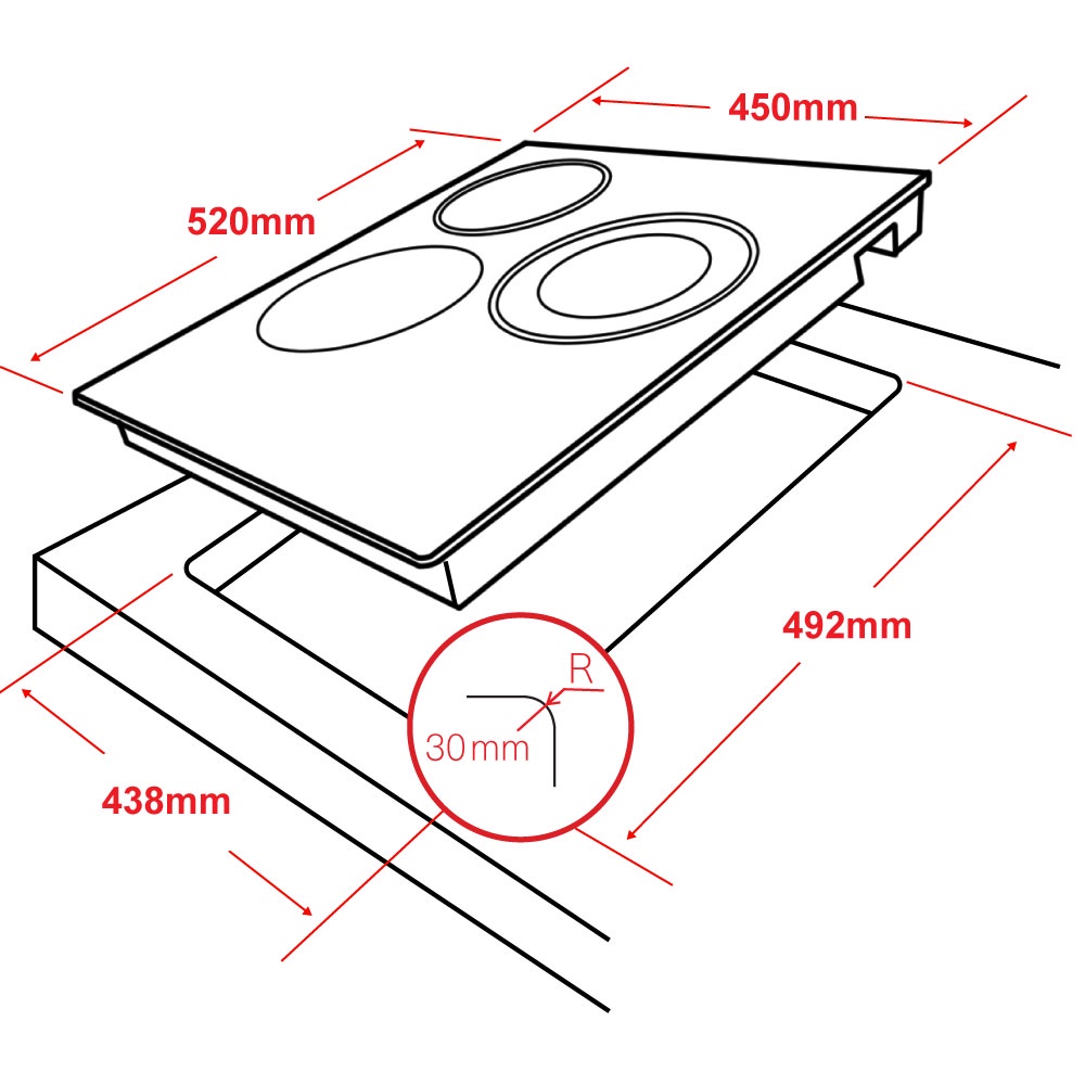 Варочная панель HCC-304, стеклокерамика 3 конф, черная, 45см