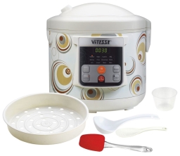 - Комплект поставки чаша; корзина для приготовления на пару; мерный стакан; плоская ложка; половник