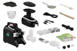- Комплект поставки диск для шинковки с крупными отверстиями; диск для шинковки с мелкими отверстиями; загрузочный лоток; толкатель; щетка для чистки