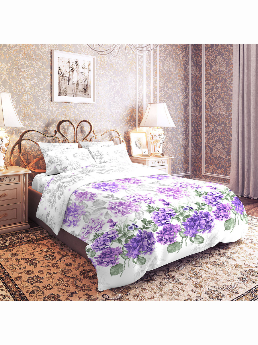 Комплект постельного белья FuzzyLama ГОРТЕНЗИЯ, Евро Евро, Хлопок, наволочки 70x70, фиолетовый