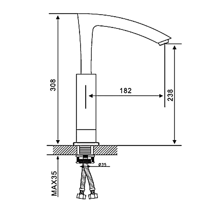 • Длина излива, мм 182