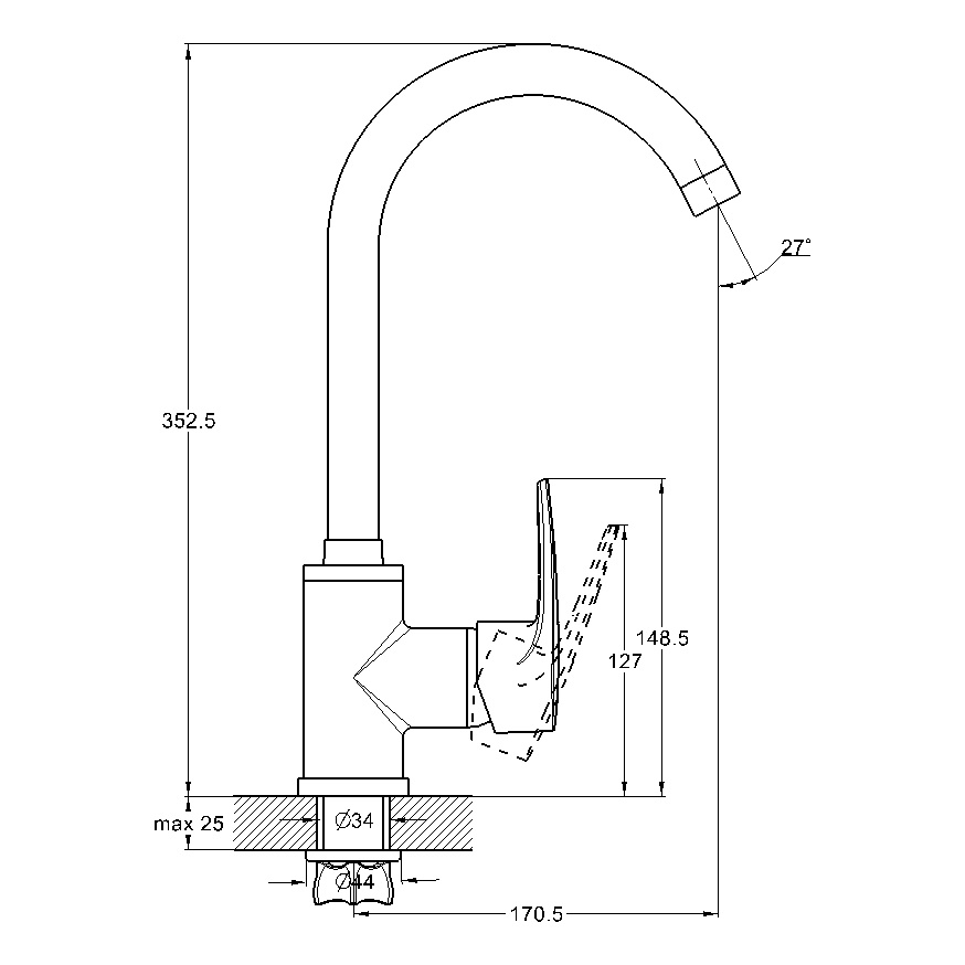 - Особенности Аэратор, Гибкая подводка, Поворотный излив