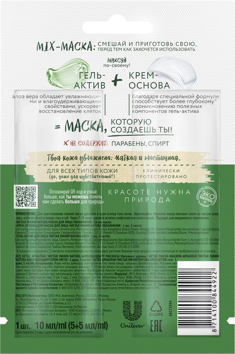 Чистая Линия Natura Маска для лица увлажнение с алоэ вера, 25 по 10 мл