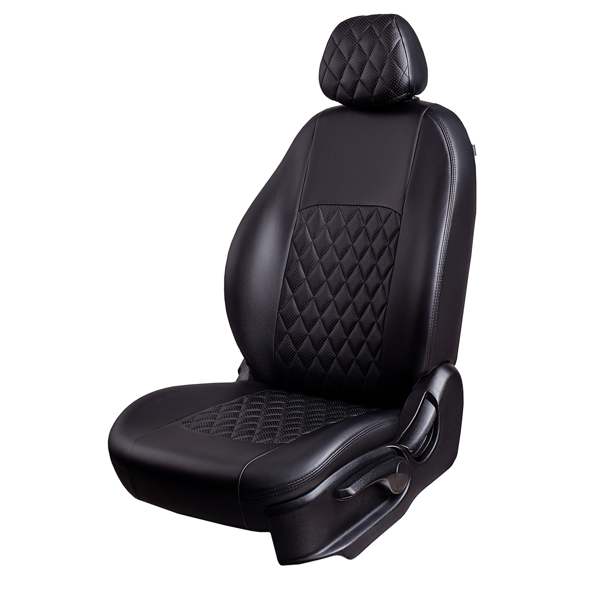 Модельные чехлы Lord AutoFashion серии Турин Ромб для Nissan Juke-1 (F15) с 2010 г., экокожа чёрная, стежка сидений и спинок чёрной нитью