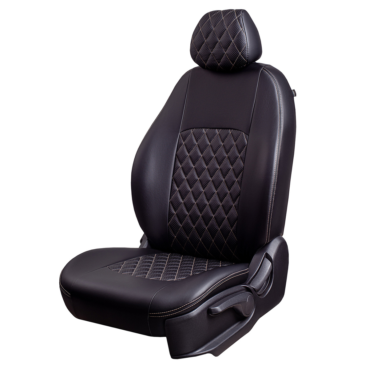 Модельные чехлы Lord AutoFashion серии Турин Ромб для Kia Rio-4 (FB) (Kia X-Line) с 2017 г., экокожа чёрная, стежка сидений и спинок бежевой нитью