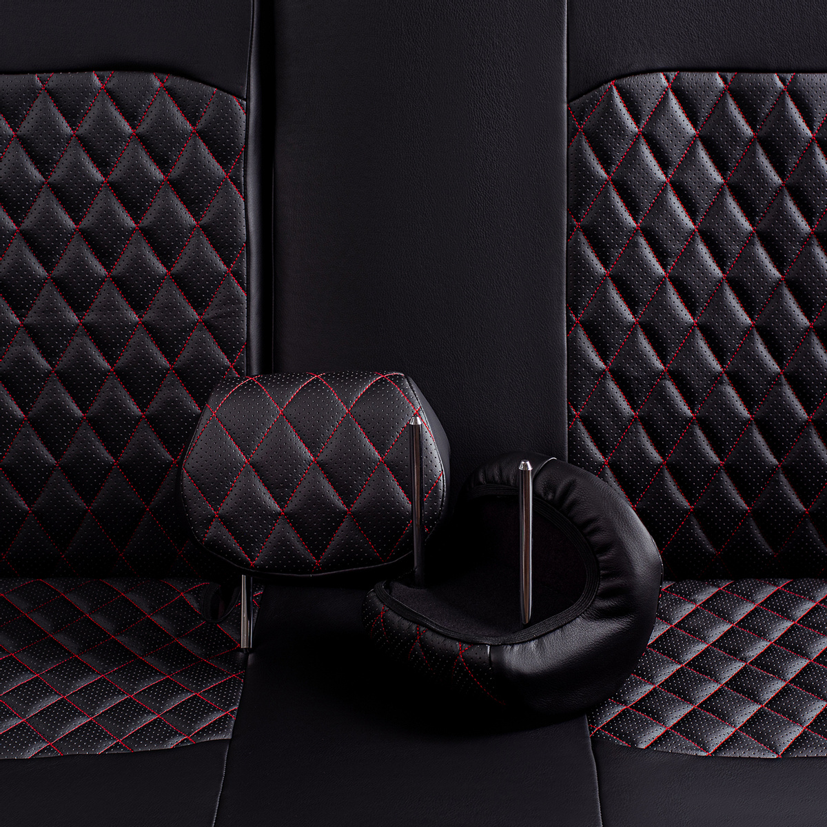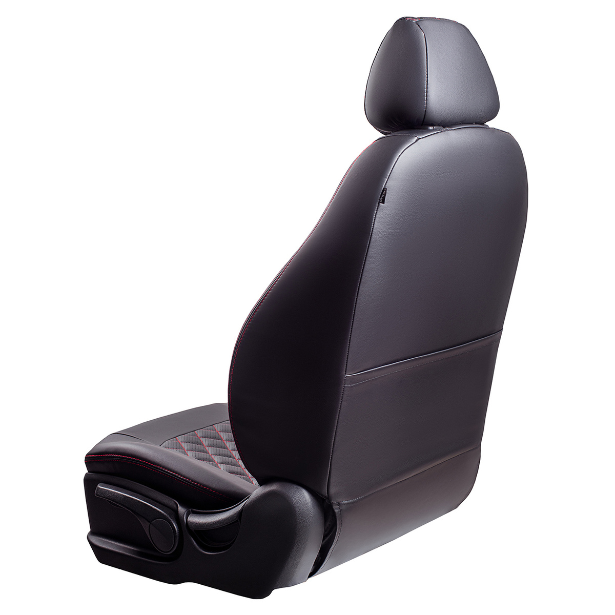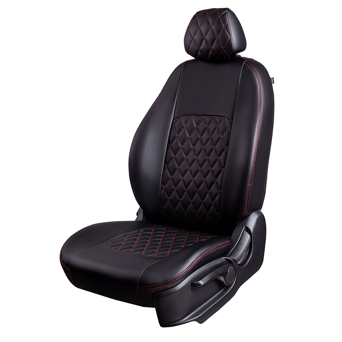 Модельные чехлы Lord AutoFashion серии Турин Ромб для Kia Cerato-2 (TD) с 2008 по 2013 г., экокожа чёрная, стежка сидений и спинок красной нитью