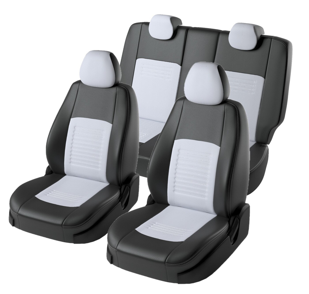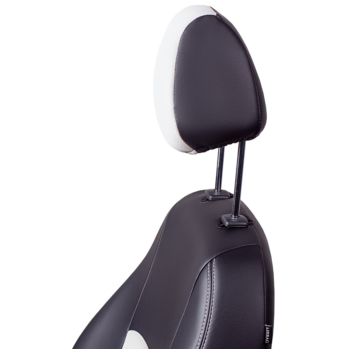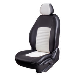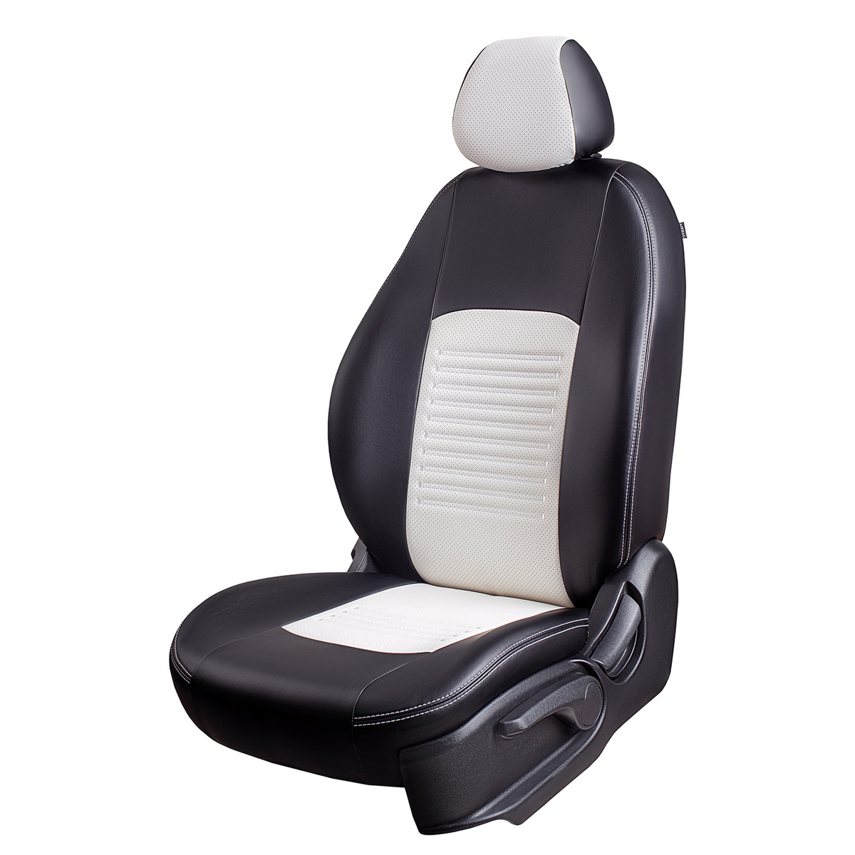 Модельные чехлы Lord AutoFashion серии Турин для Mazda 3-2 (BL) седан с 2009 по 2013 г., экокожа чёрная, вставка сидений и спинок экокожа белая