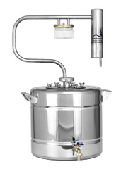 • Комплектация • Перегонный куб • Дистиллятор • Барашки 6 шт • Прокладка силиконовая • Термометр биметаллический • Кран для слива барды на кубах от 20 литров • Книга с рецептами • Фирменная коробка