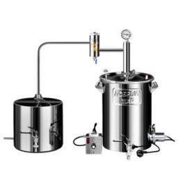 • Комплектация • Перегонный куб • Дистиллятор • Холодильник • Кламп Ø 1,5" 2 шт. • Прокладка силиконовая Ø 1,5" 2 шт. • Термометр цифровой • Спиртомер • Хмельные дрожжи 100 гр. • Кран для слива барды на кубах от 20 литров • Книга с рецептами • Фирменная коробка • Съемный ТЭН