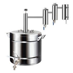 • Комплектация • Перегонный куб • Дистиллятор • Барашки 8 шт • Прокладка силиконовая • Термометр биметаллический • Кран для слива барды на кубах от 20 литров • Книга с рецептами • Фирменная коробка