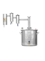 • Комплектация • Перегонный куб • Дистиллятор • Кламп Ø 1,5" • Прокладка силиконовая Ø 1,5" • Термометр цифровой • Спиртомер • Хмельные дрожжи 100 гр. • Кран для слива барды на кубах от 20 литров • Книга с рецептами • Фирменная коробка