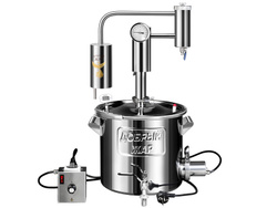 • Комплектация • Перегонный куб • Дистиллятор • Кламп Ø 1,5" • Прокладка силиконовая Ø 1,5" • Термометр цифровой • Спиртомер • Хмельные дрожжи 100 гр. • Кран для слива барды на кубах от 20 литров • Книга с рецептами • Фирменная коробка • Съемный ТЭН