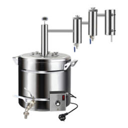 • Комплектация • Перегонный куб • Дистиллятор • Барашки 8 шт • Прокладка силиконовая • Термометр биметаллический • Кран для слива барды на кубах от 20 литров • Книга с рецептами • Фирменная коробка