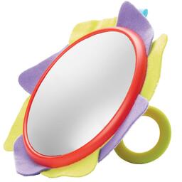 Позиція 2 (Tummy & Play). Дитина лежить на животику, спираючись на подушечку, розглядає себе в дзеркальце, вивчає і грає брязкальцями.