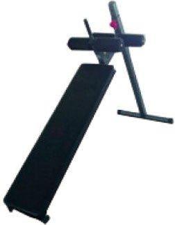 Скамья с прямой спинкой для тренировки мышц пресса. Регулируемый угол наклона. 2 пары упорных валиков. Рукоятка для принятия исходного положения. Вес: 22 кг.