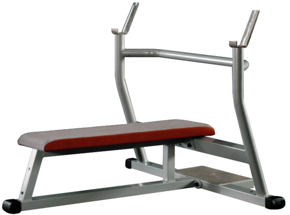 Скамья олимпийская для жима лежа. Рычаги для грифа. Рама из круглого профиля без изменения поперечного сечения. Минимум сварных швов. Размеры: 144x200x100 см. Вес: 83 кг.