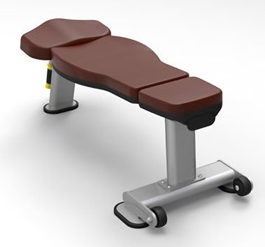 Горизонтальная силовая скамья для различных тренировок с отягощениями. Анатомическое сиденье. Разделение спинки на 2 части с различной плотностью наполнителя. Стальная легированная рама (толщина круглого профиля - 3 мм). Обивка с двойными швами. Прорезиненные заглушки на опорах. Транспортировочные колеса. Размеры: 123x53x45 см. Вес: 25 кг. 2 варианта цвета обивки.