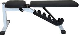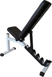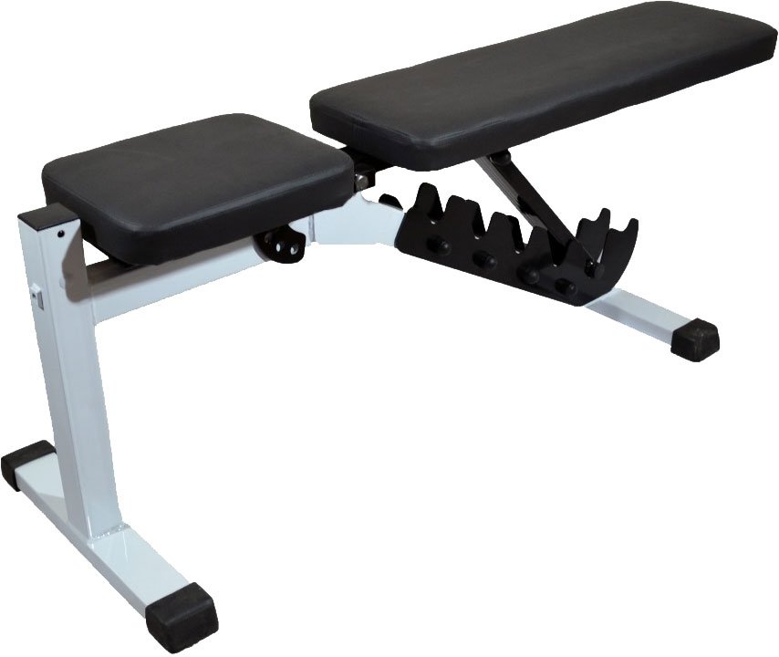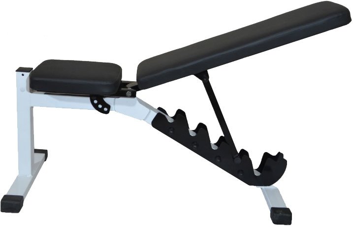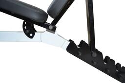 Универсальная скамья для жима. Регулируемый угол наклона спинки и сиденья (в пределах 85° от положительного до отрицательного). Рама: высокопрочный стальной профиль 50x50 мм, толщиной 2 мм. Материал обивки: турецкий кожзаменитель. Пластиковые подпятники для защиты пола. Возможность установки дополнительных опций.