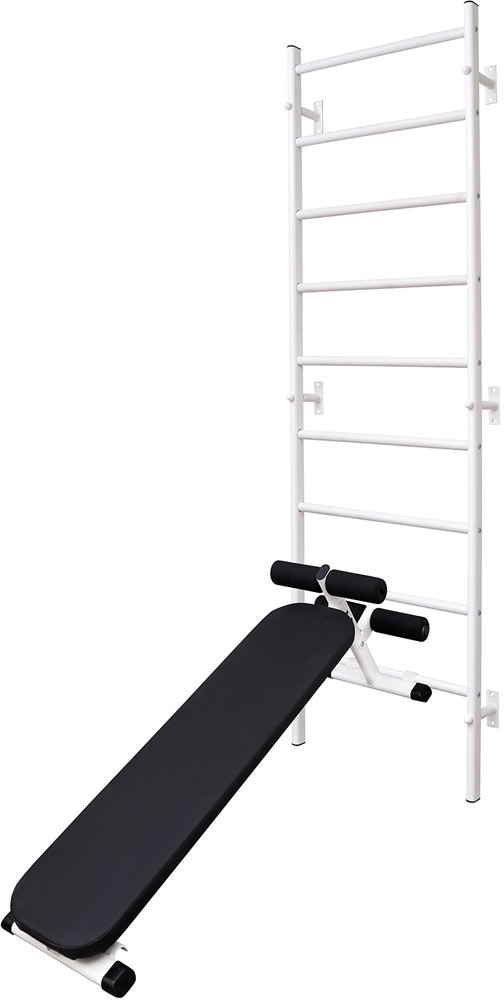 Прямая скамья для пресса. Подходит для выполнения: пресса, жима штанги, жима гантелей (лёжа, сидя, нагнувшись), растяжки. Регулировка угла наклона спинки. Валики фиксаторы для ног. Стальная рама, профиль 40 мм. Складная конструкция. Максимальный вес пользователя: 250 кг. Размеры: 135x30x40 см. Вес: 11 кг. Цвет: белый.