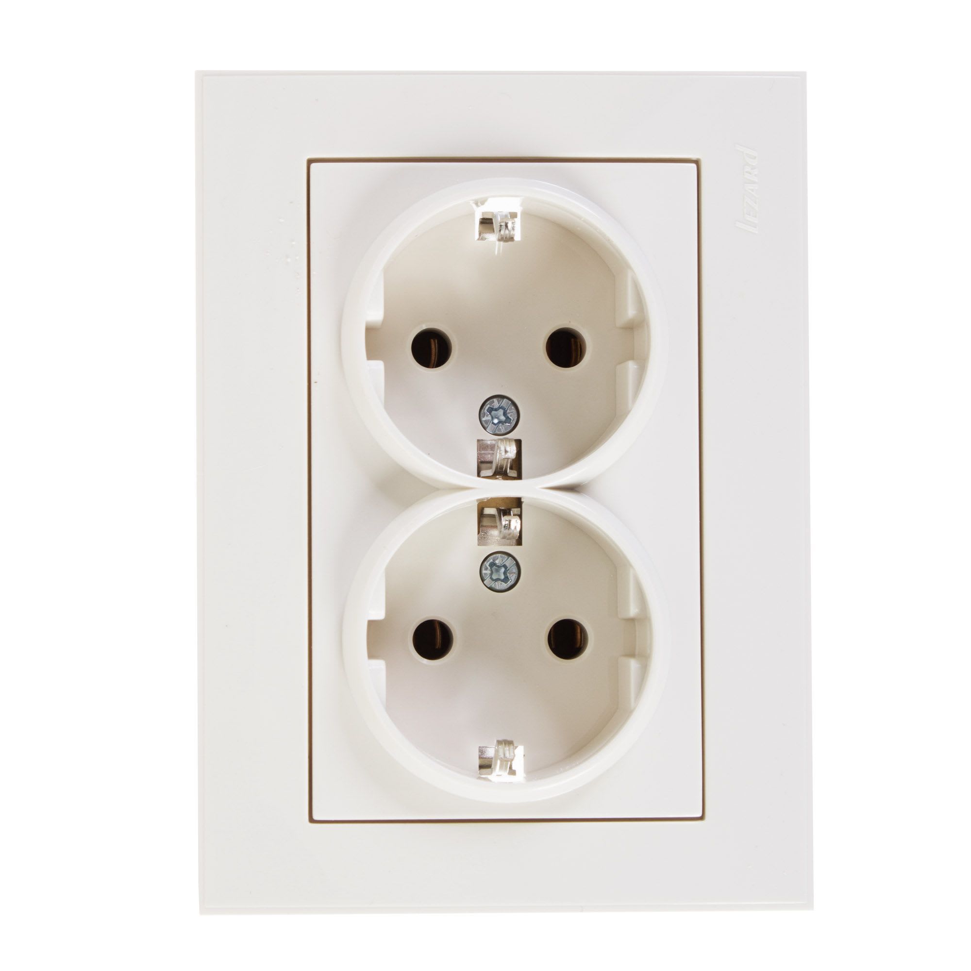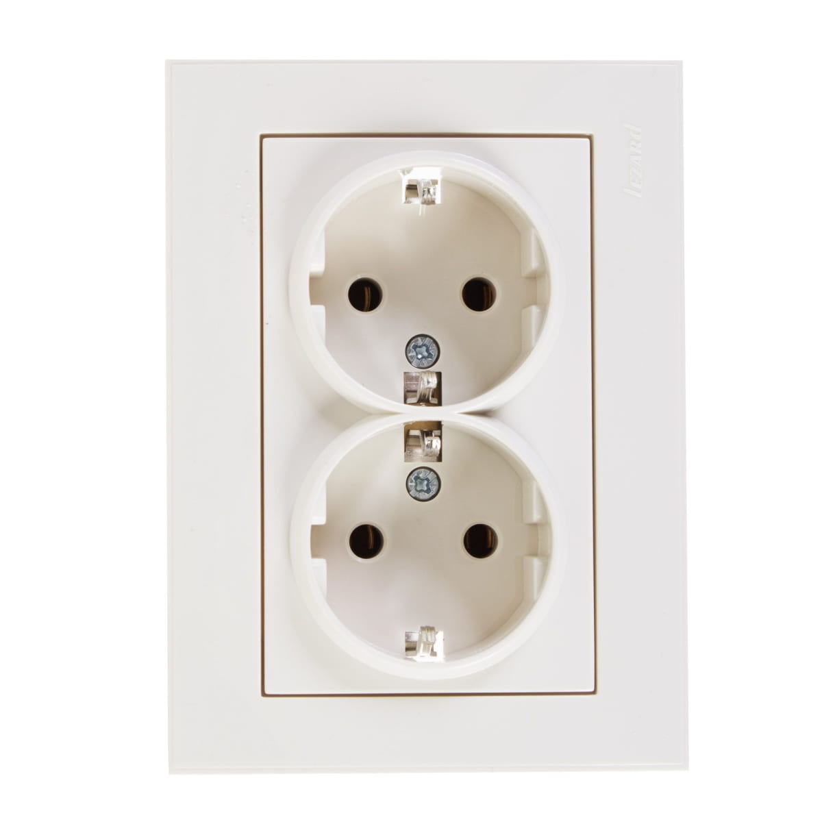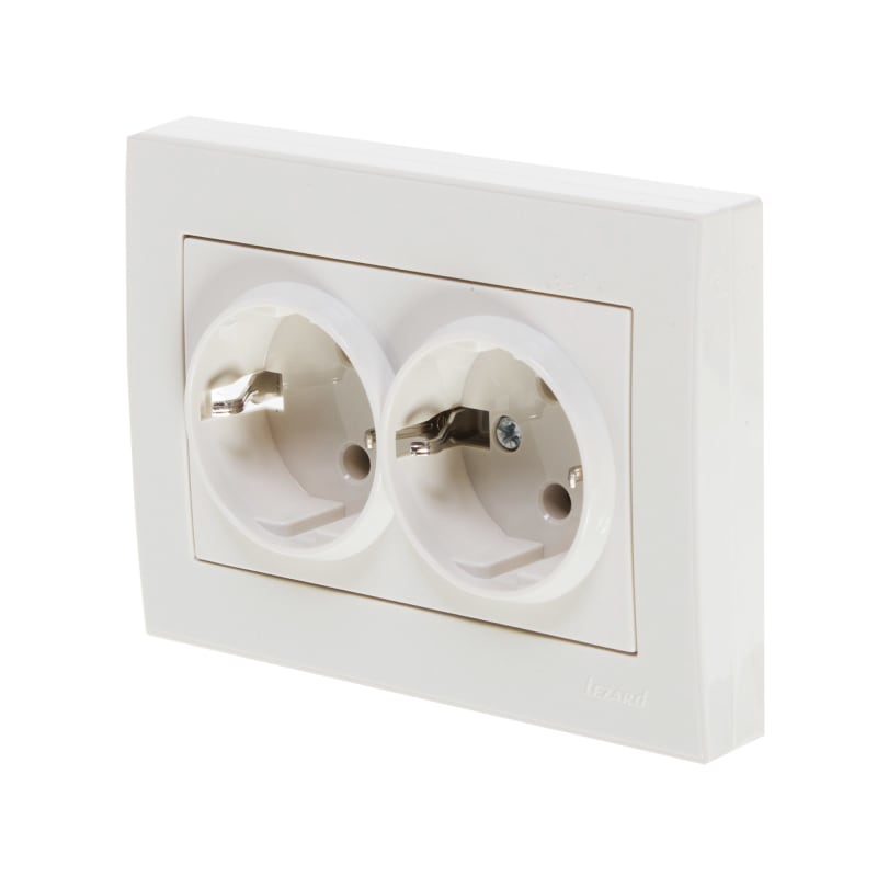 Розетка двойная встраиваемая Lezard Rain с заземлением, цвет бежевый