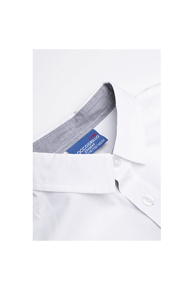 Хлопковая белоснежная сорочка с декоративным нагрудным кармашком и удобными пуговицами. Сорочка выглядит стильно и нарядно, выполнена из натурального неаллергенного материала.