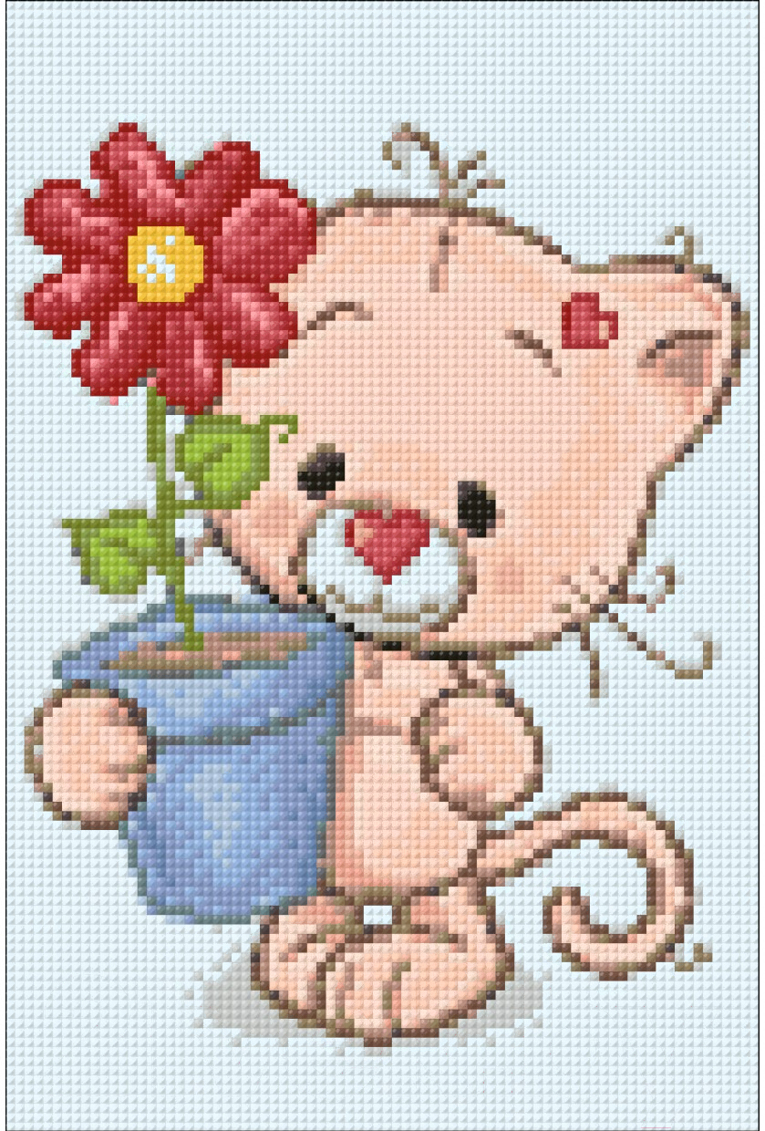 Набор алмазной вышивки Wizardi Котенок с подарком / WD2367