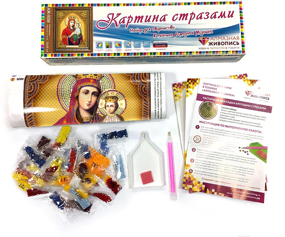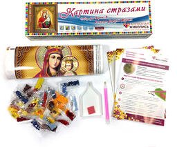 - Комплектация набора пинцет, полотно-схема с клеевой основой, набор страз, инструкция, лоток для страз