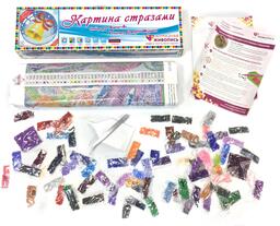 - Комплектация набора пинцет, полотно-схема с клеевой основой, набор страз, инструкция, лоток для страз