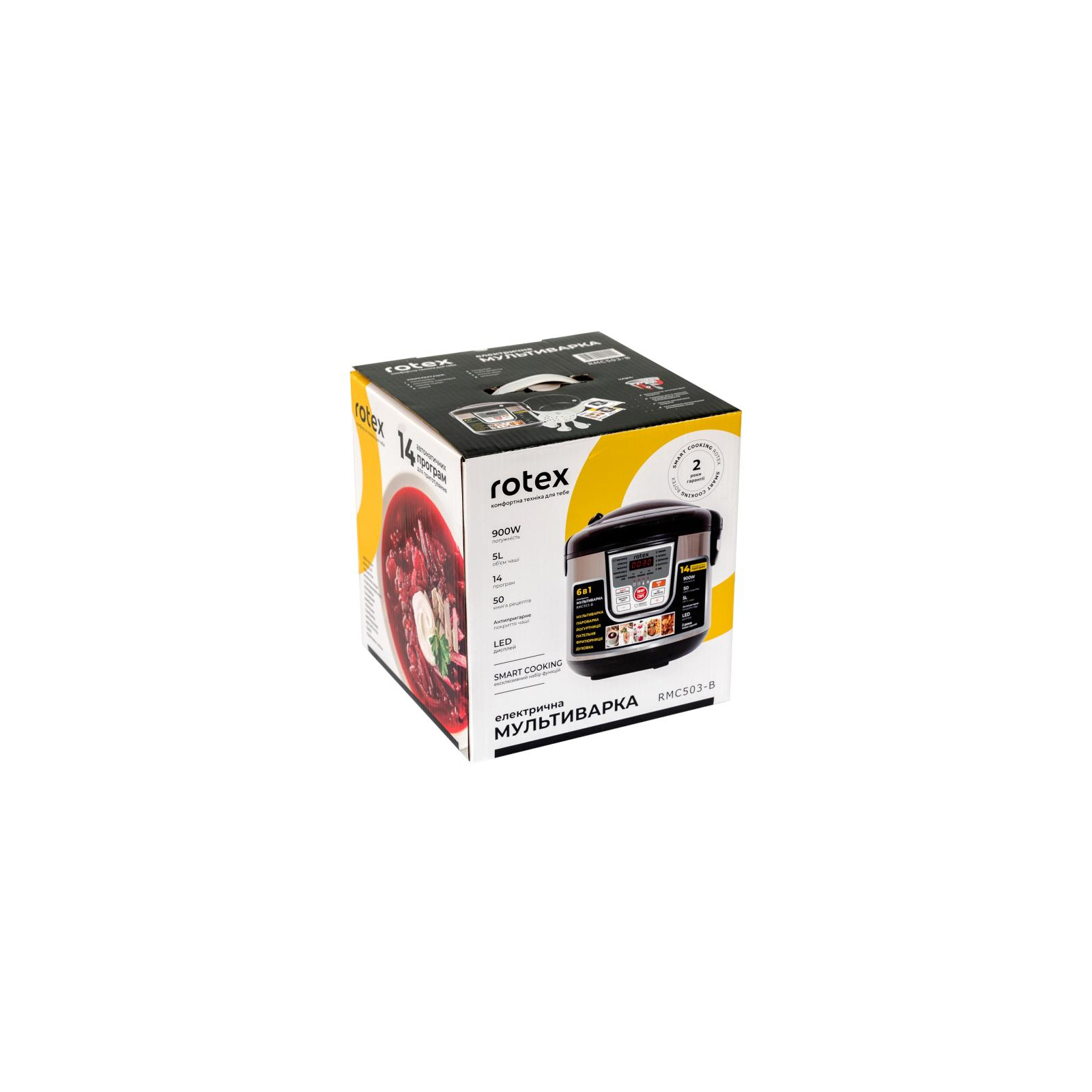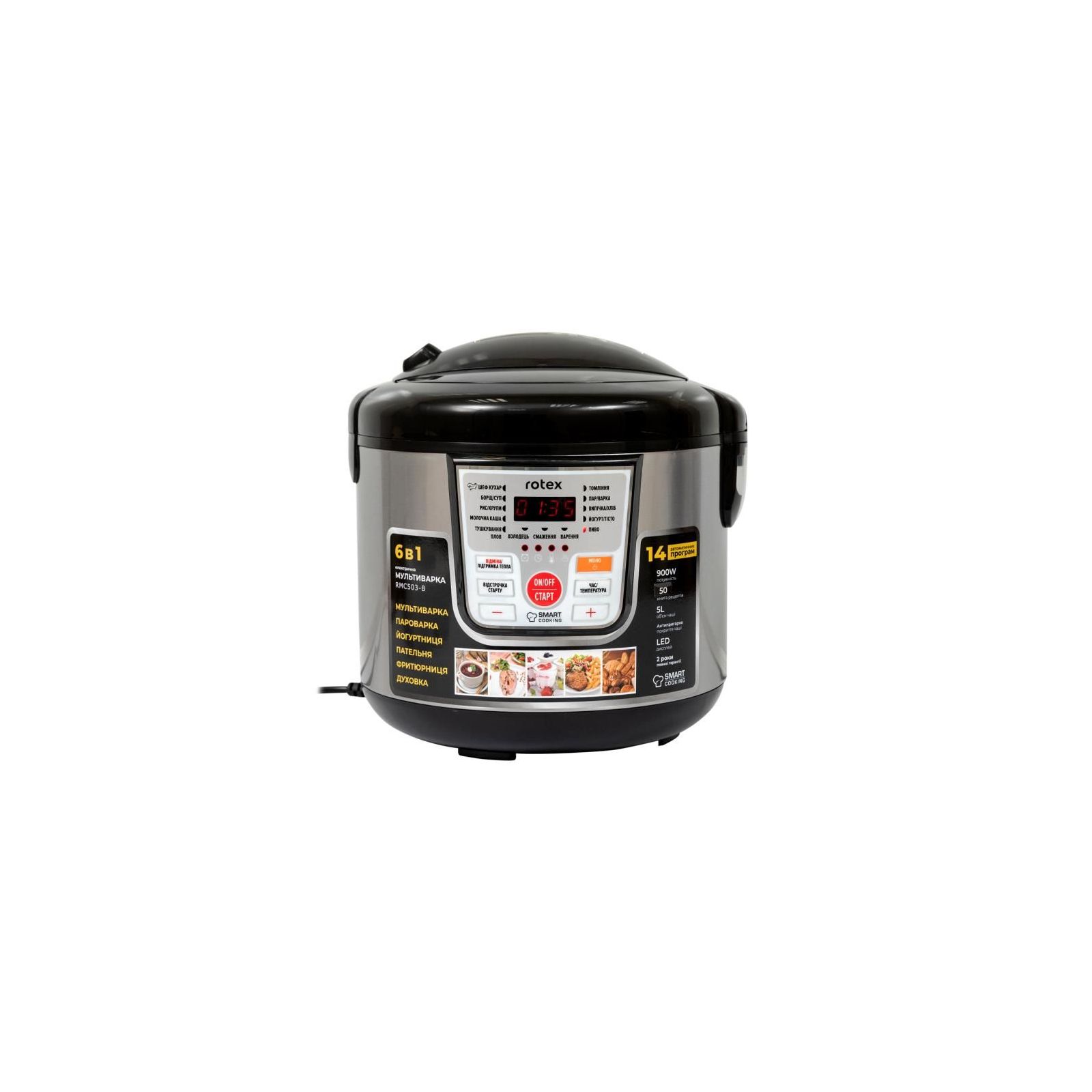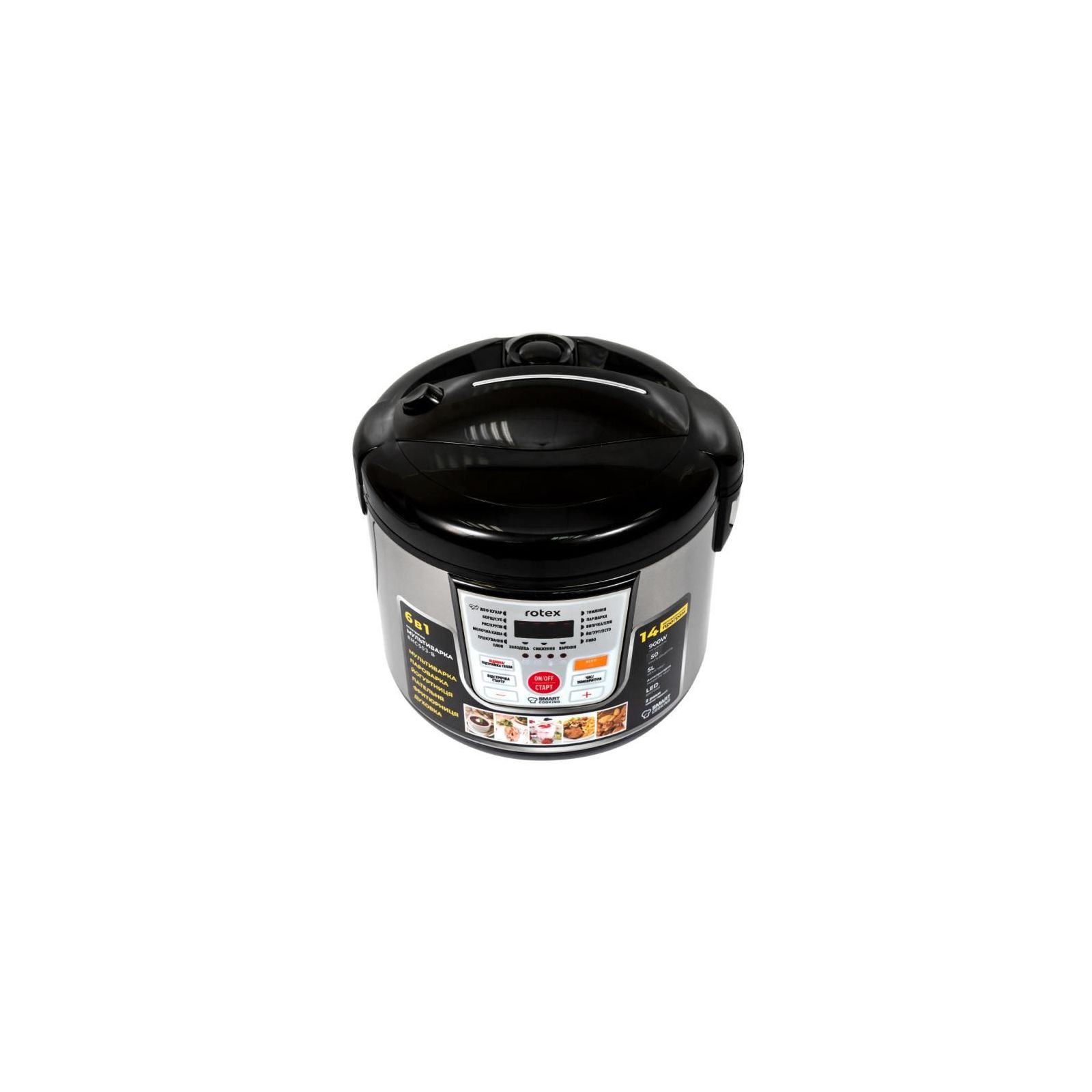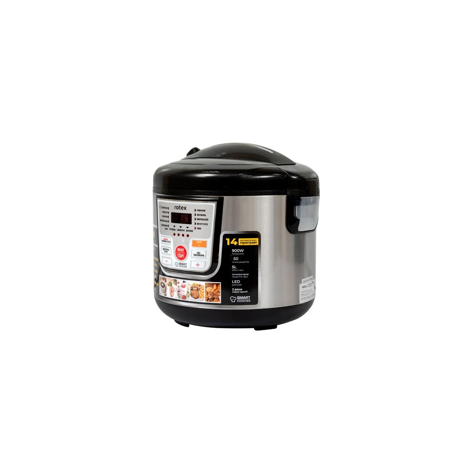 Пристрій представленої моделі від компанії ROTEX володіє потужністю 900 Вт. Користувачеві доступні три основних режими приготування – смаження, тушкування, варіння на пару. Також є можливість приготування певного виду перших і других страв (суп/борщ/вуха, плов, холодець, рис, молочна каша), а також різноманітних десертів - йогурт, джем, випічка.