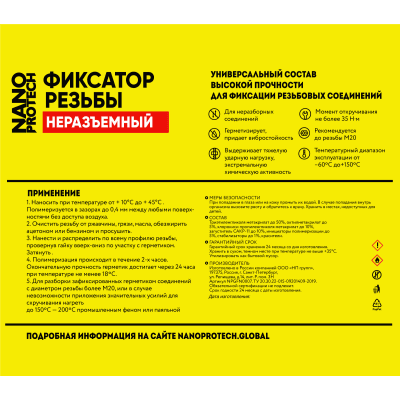 Фиксатор резьбы неразъемный Nanoprotech, 6 мл
